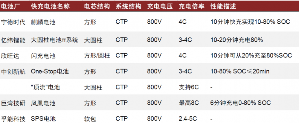 圖表6:各家電池廠高壓快充技術進展(截至2023年8月11日)