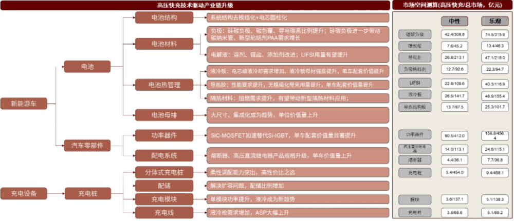 圖表5:高壓快充技術驅動產業鏈升級,我們預計細分市場空間有望擴容
